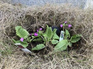 そして、今日、クリニックの玄関近くの猫の額ほどの花壇にサクラソウ(桜草)を子どもたちと植えました。